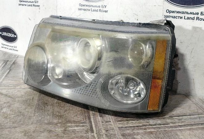 Фара левая адаптивный ксенон без боковой подсветки в сборе Land Rover Range Rover Sport L320 2005-2009 стекло под восстановление, корпус снизу расколот