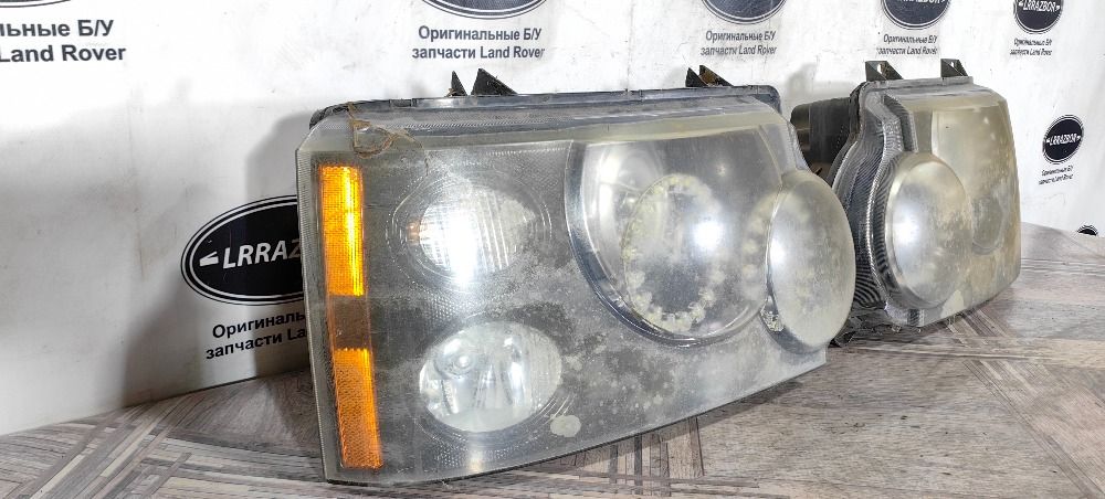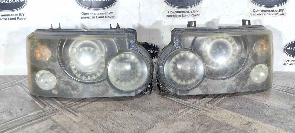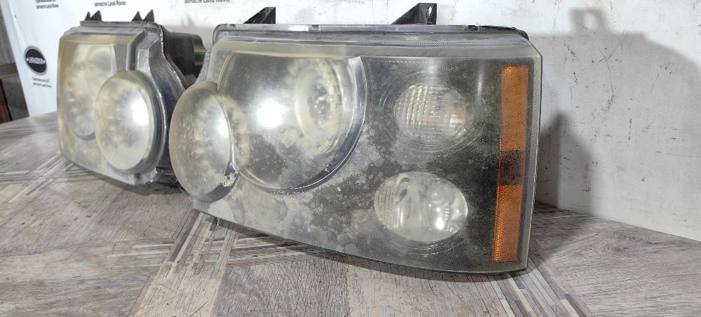 Фара левая правая комплект пара простой ксенон Land Rover Range Rover 3 L322 2005-2009. Цена за комплект, продажа только комплектом. Фары после неудачного колхоза, на опыты или под восстановление, на правой фаре сломан верхний крепеж и треснуто стекло в углу. Внутри диодные кольца на линзах