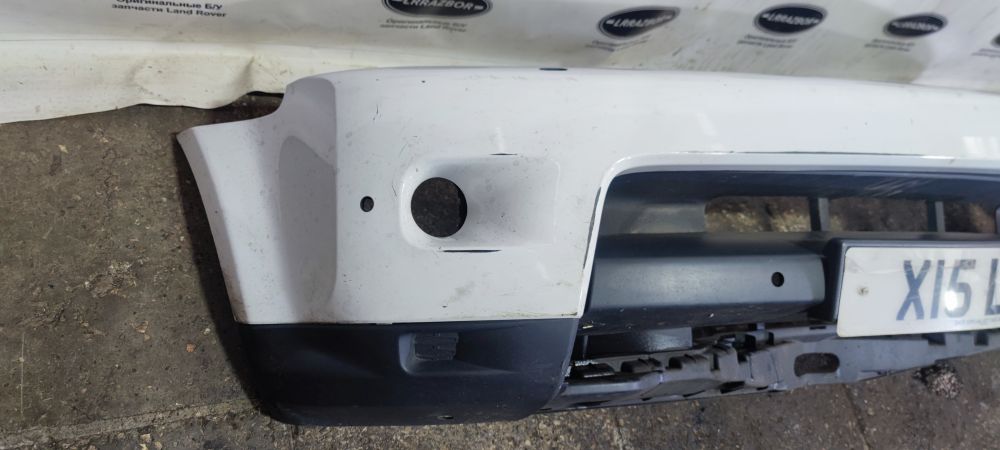 Бампер передний голый под мелкий ремонт для Land Rover Range Rover Sport 2009-2013, белый. Комплектация без камер. Крепеж весь целый, совместить 2 части и спаять