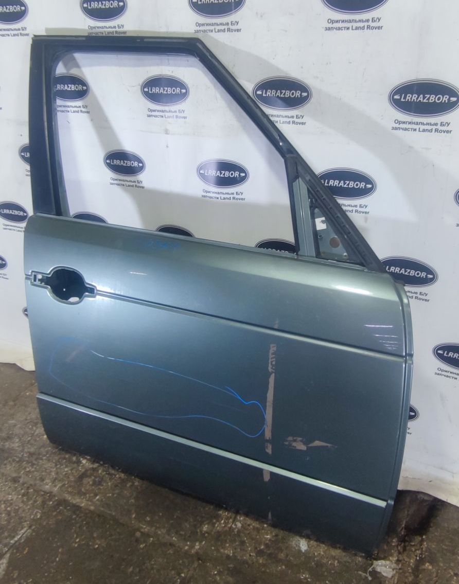 Дверь передняя правая Land Rover Range Rover L322 2002-2012 в отличном состоянии в сборе с нижним молдингом. Цвет светло зеленый, окрас вторичный.