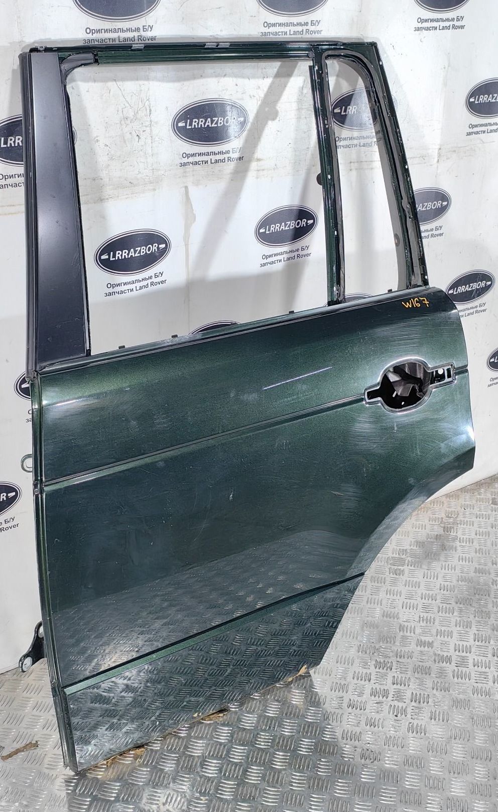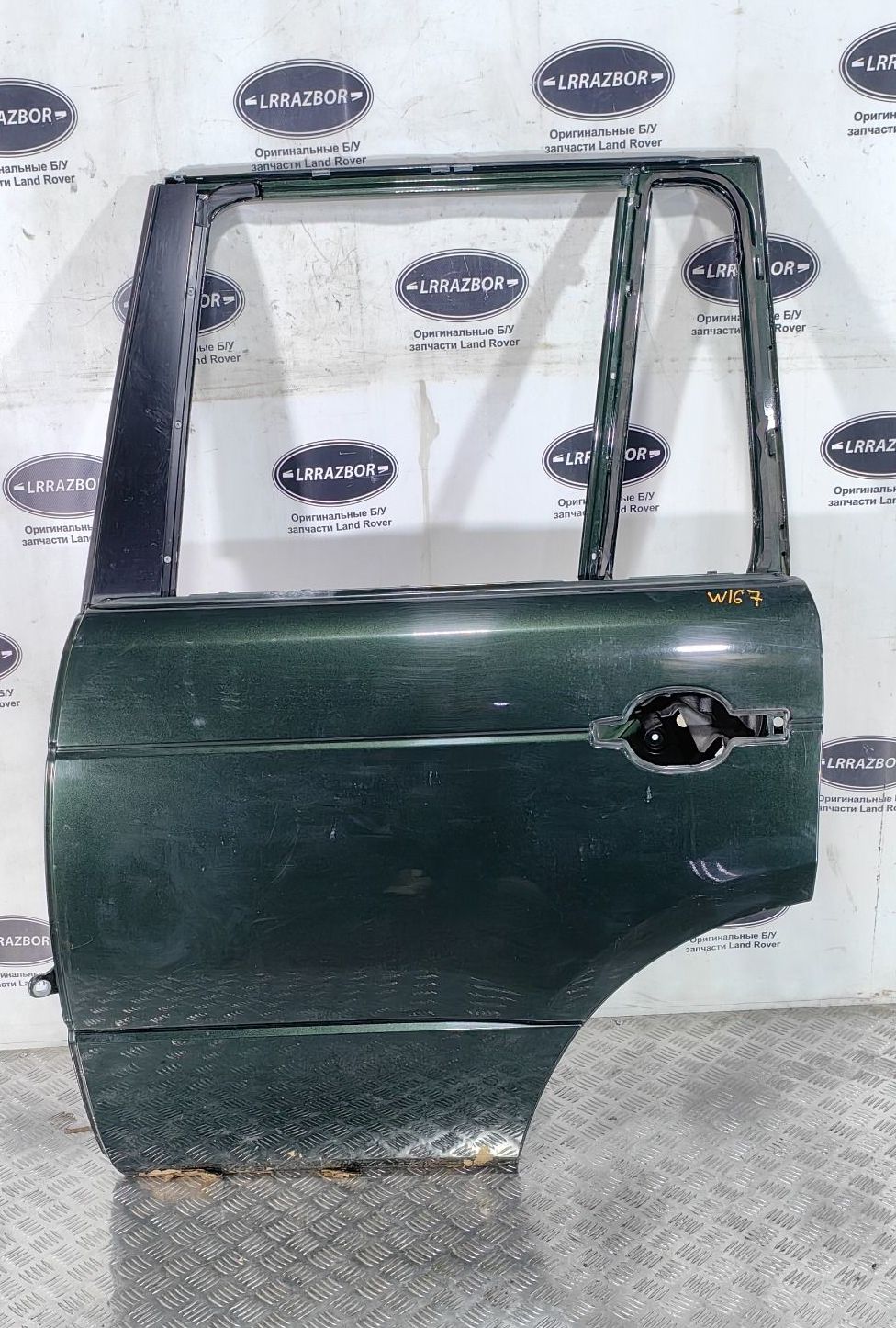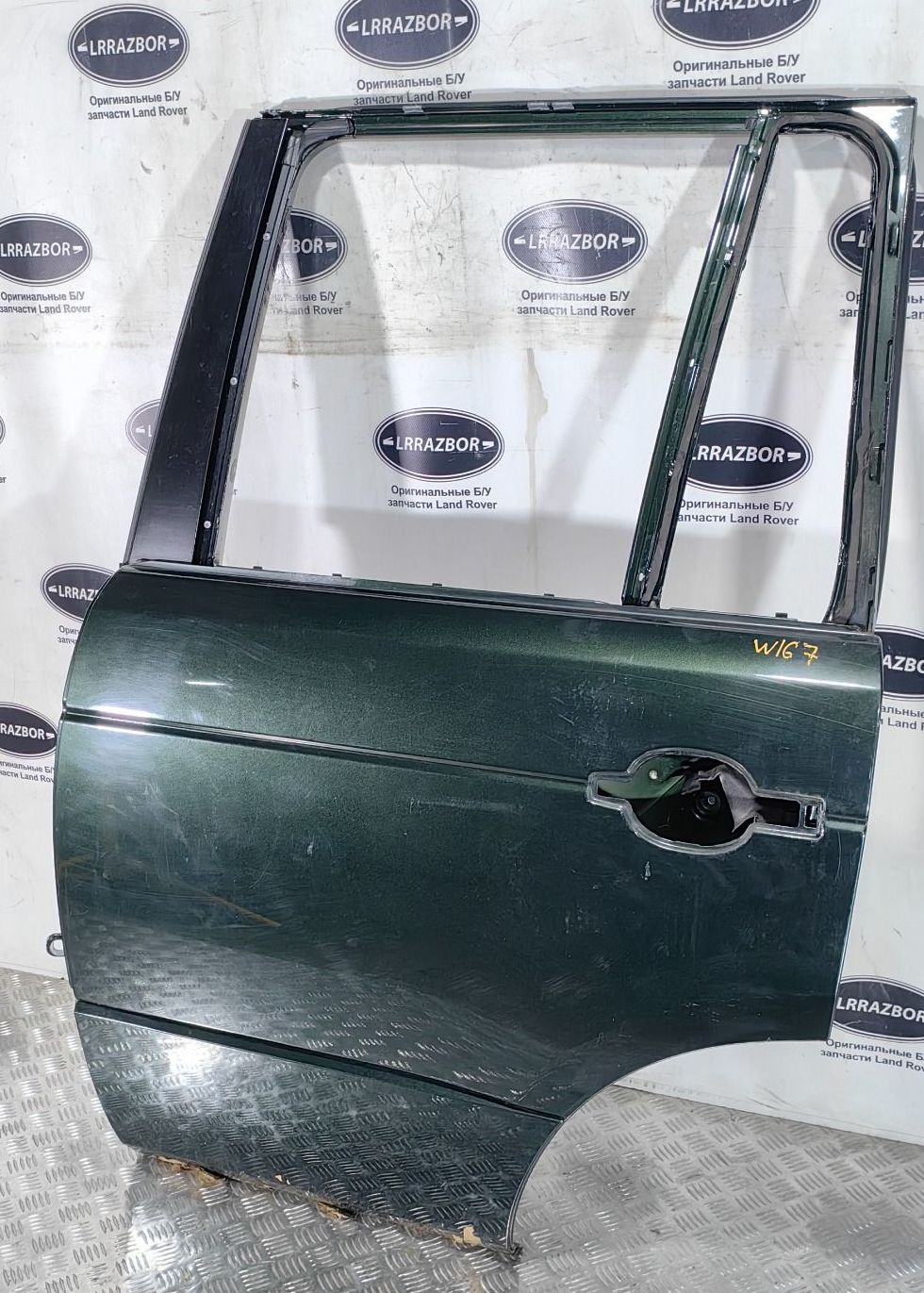 Дверь задняя левая Land Rover Range Rover L322 2002-2012 в хорошем состоянии в сборе с молдингом. Цвет зеленый, окрас завод