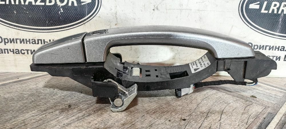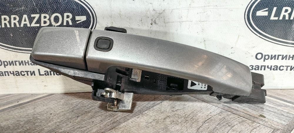Ручка двери задняя левая Range Rover Sport L320 2009-2013 в сборе. С функцией бесключевого доступа. Крашена в цвет кузова, серый. 1 усик на колпачке сломан
