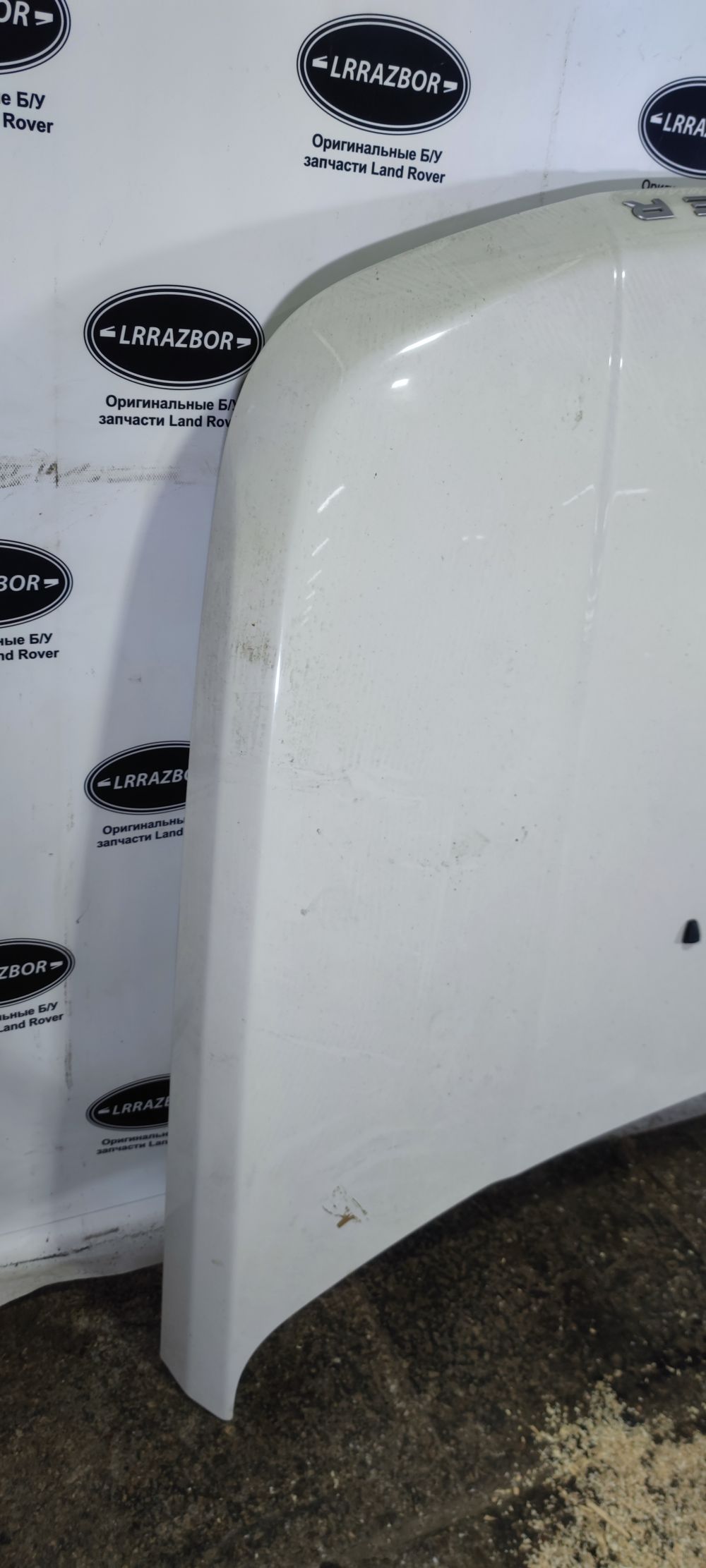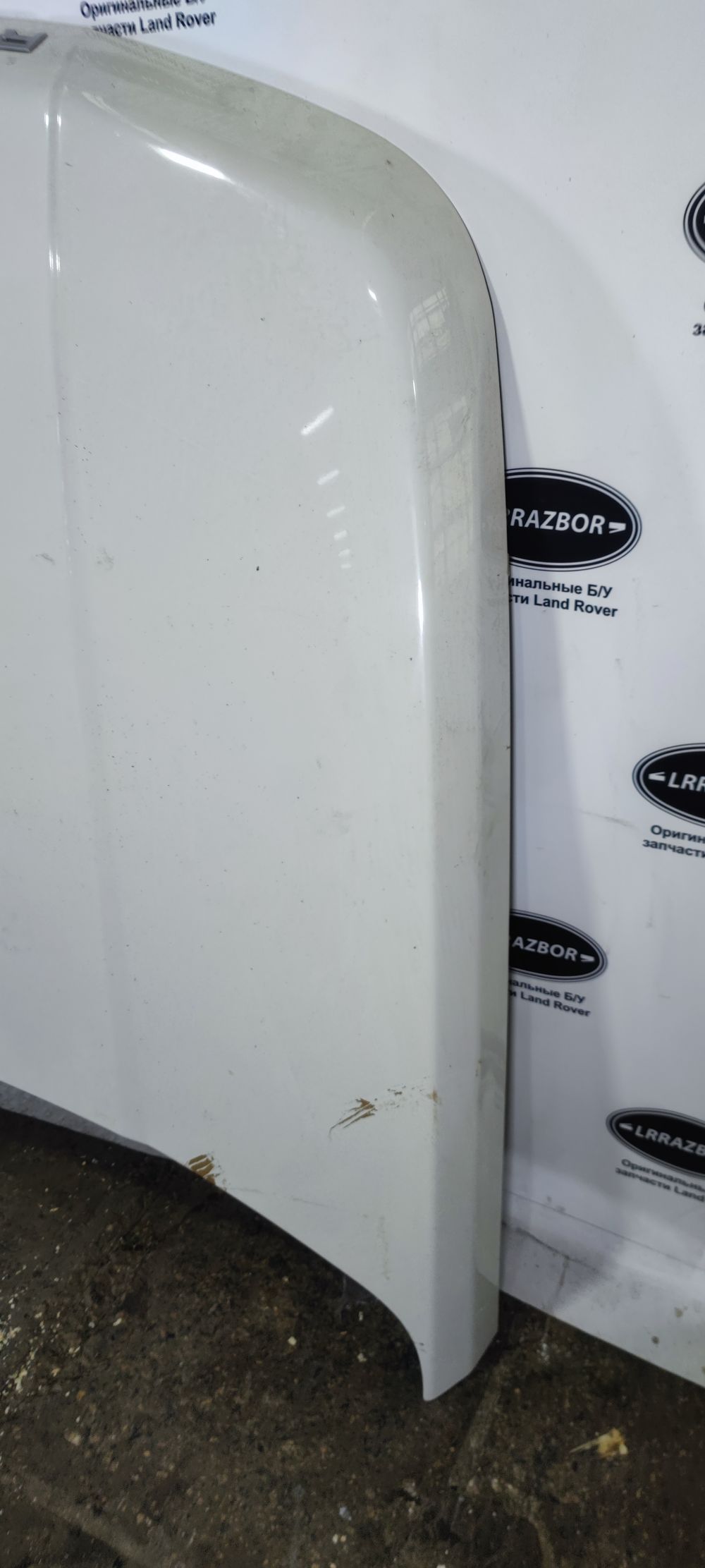 Капот Land Rover Range Rover Sport L320 2005-2013. Цвет белый, окрас заводской, есть вспучивание в передней части по кромке, с правой стороны перевозочный тычок