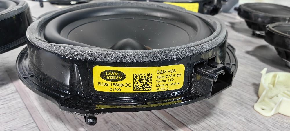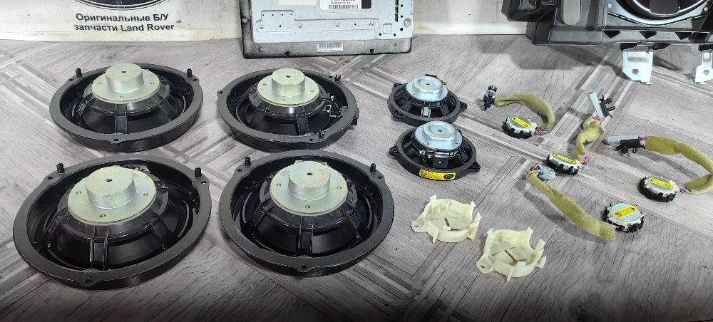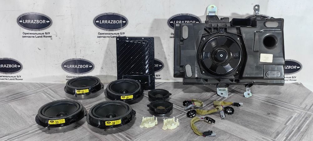 Музыка полный комплект HIGH 12 600ВТ Land Rover Range Rover Evoque L538 2011-2015, включает в себя усилитель, саб, 4 низкочастотных динамика в двери, 2 среднечастотных динамика и 4 пищалки