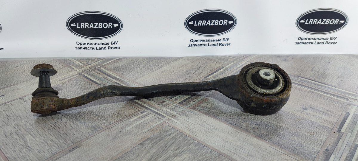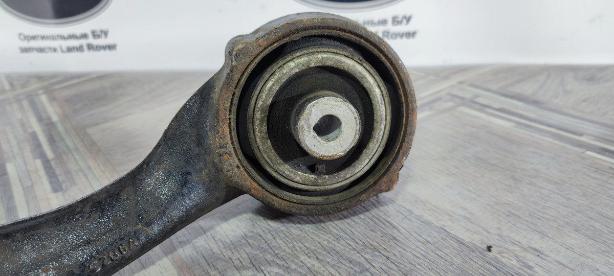 Рычаг передний нижний кривой левый в среднем состоянии Land Rover Range Rover Sport 2 L494 / Land Rover Range Rover 4 L405. Оригинал, шаровая не люфтит, но ходит легко, сайлентблок с трещинами, но не рваный. Так в целом - еще побегает.