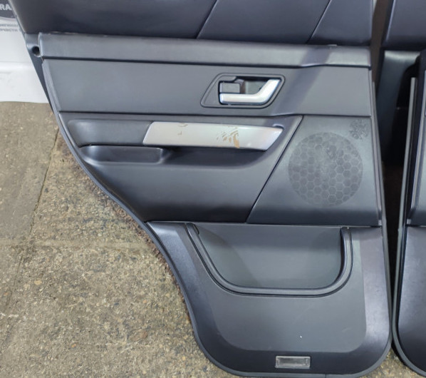 Дверные карты 4 штуки комплект Range Rover Sport 2005-2009, в сборе. Обшивки дверей в среднем состоянии, есть мелкие дефекты. Цвет черный с черными кожаными вставками по центру. Продажа только комплектом, цена за комплект.