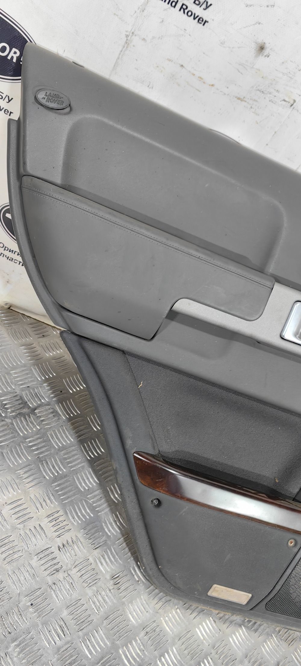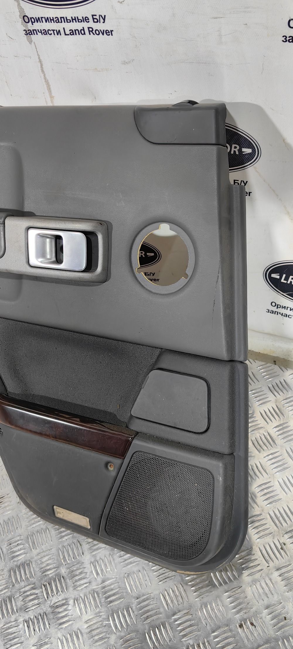 Дверная карта обшивка двери задняя левая Land Rover Range Rover L322 2002-2005 в хорошем состоянии, цвет серый. Есть мелкие дефекты, см фото