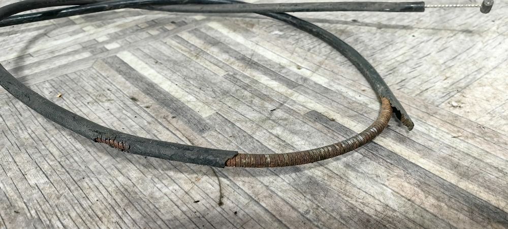 Трос открывания капота средний между тросом из салона и тросом между замками Land Rover Range Rover L322 2002-2012 по центру пластиковая оплётка облезла