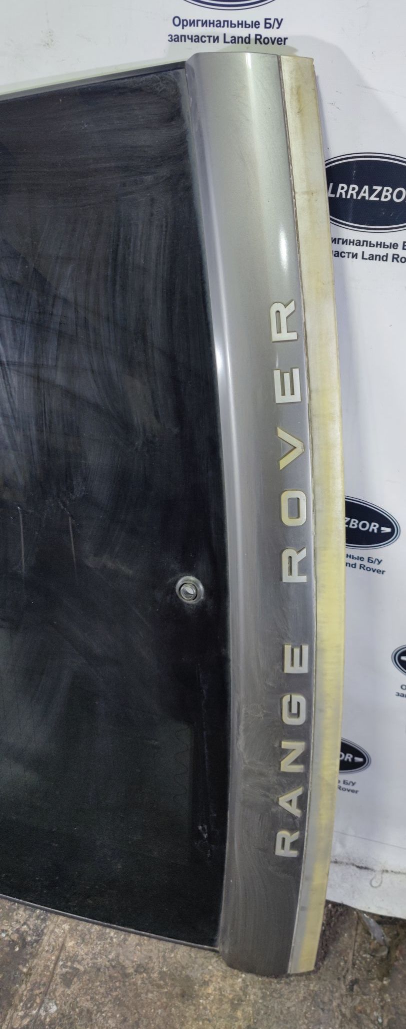 Стекло крышки багажника в сборе с ручкой, кнопкой и подсветкой Land Rover Range Rover Sport L320 2009-2011 рестайл. Состояние хорошее, оригинал, цвет накладки серый.