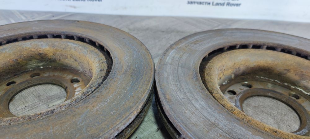 Диски тормозные передние пара комплект Land Rover DISCOVERY 3 L319 2005 - 2009 / Range Rover Sport 2005-2009 4.4 бензин. На одном диске по центру есть борозда