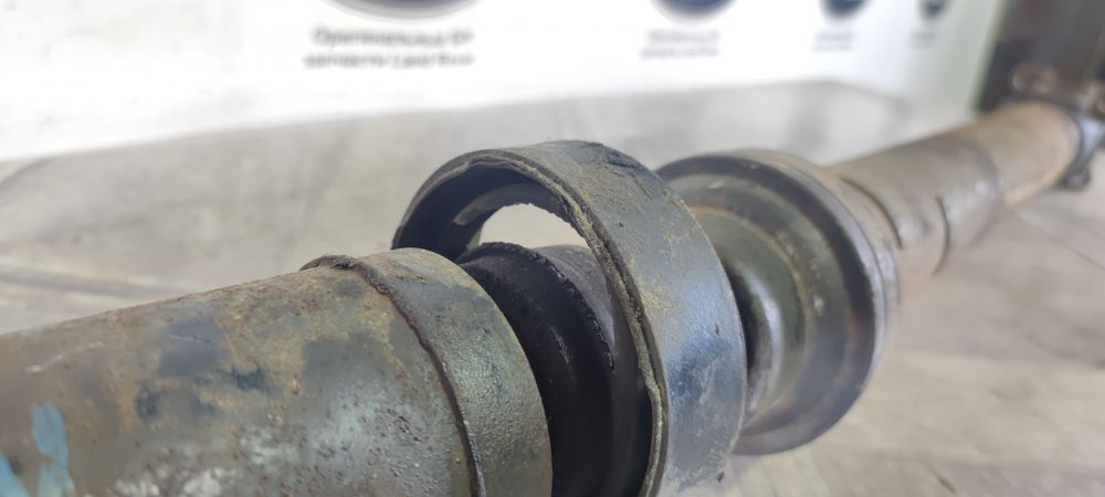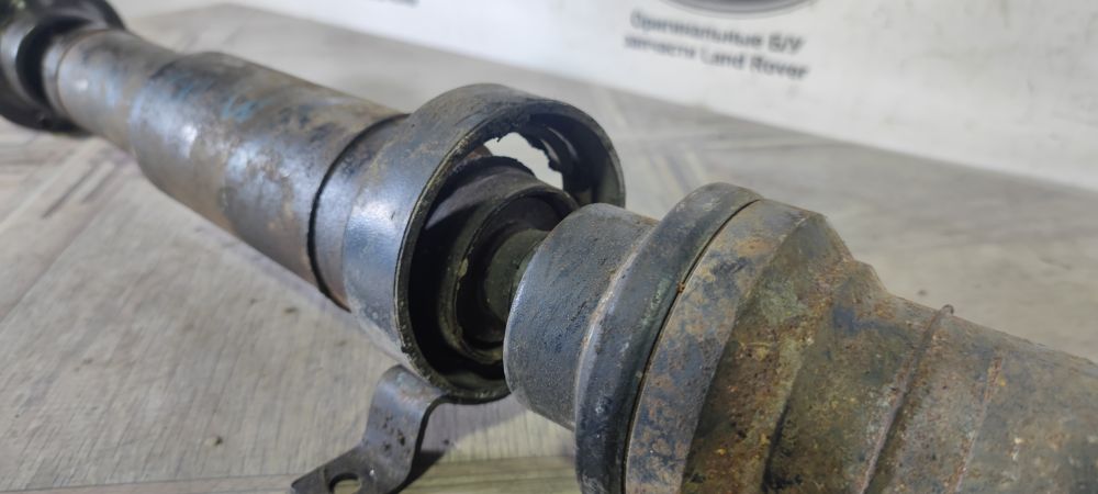 Карданный вал задний в сборе Land Rover Range Rover Sport L320 2005-2013. Есть незначительные люфты в гранатах, крестовина целая, подвесной подшипник под замену, т.к рваная резинка.